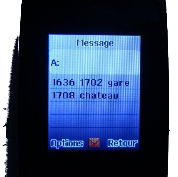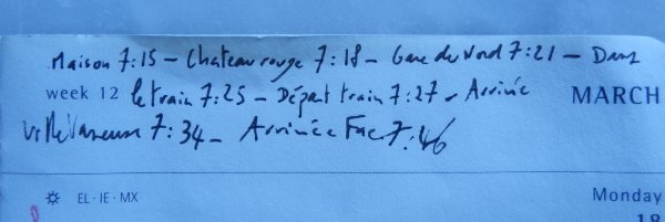 | Départ du train | 7h27 | Essouflé |